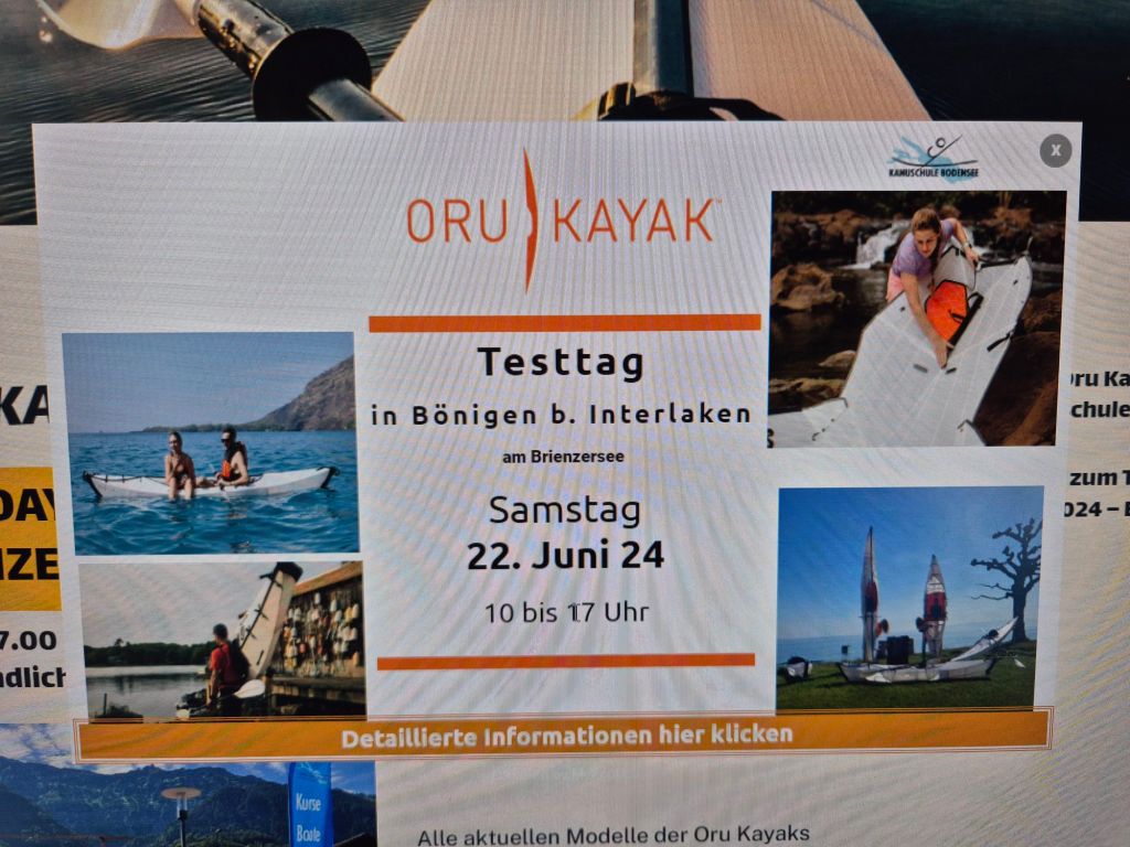 Durch eine Arbeitskollegin habe ich die ORU Kayaks entdeckt. Kurzerhand gab es gerade am darauffolgenden Wochenende 22.Juni 2024 Testtage in Bönigen am Brienzersee durch die Kanuschule Bodensee die ich mir natürlich nicht entgehen lassen durfte.